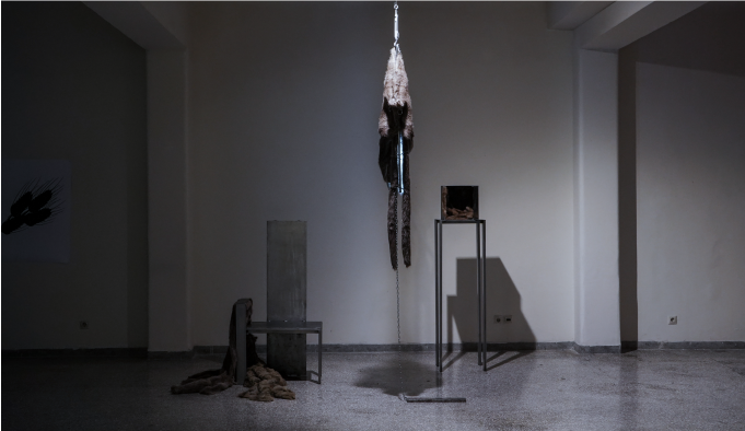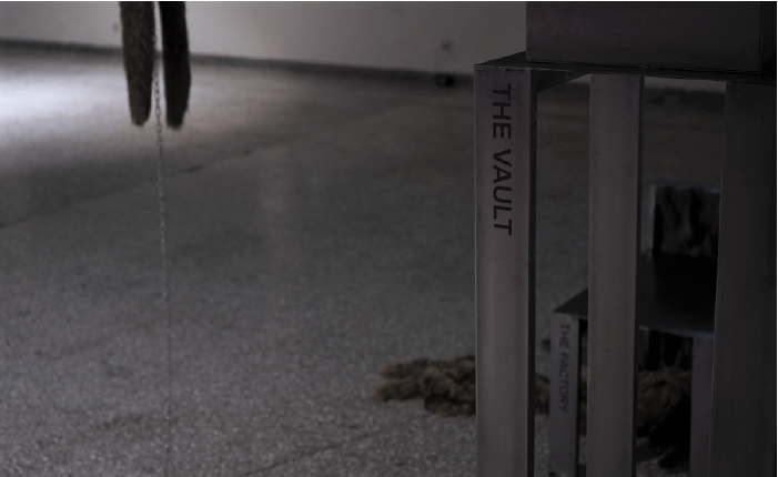 Given this theoretical framework, the project consists of three chapters: The factory/The Vault/The slaughterhouse, regarding animal abuse, visually translated into three objects. The visual representations of these objects and the gesturing in which they invite, formulate an imitation of the processes of human cruelty against animals. The pieces were presented at Ruins of an Extreme Present Exhibition at Romantso Space.